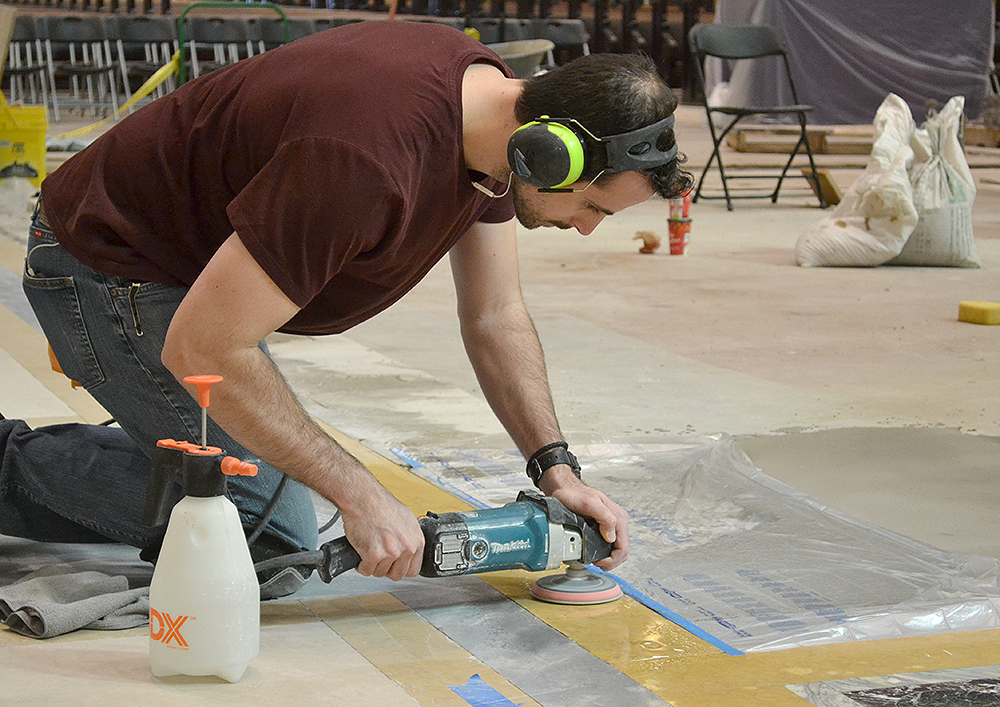 The section of floor underneath the first set (10 rows) of pews was finished right before Easter 2023 and, once the second set was removed, work immediately began on that section. Work continued from the front of the Shrine to the back until completion.